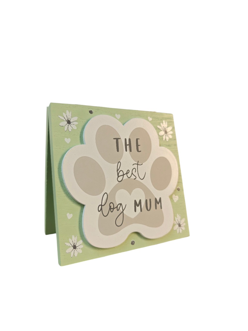 Celebrate the special bond between a dog mum and her furry companion with this adorable wooden block featuring a cute paw design and the heartfelt message “The Best Dog Mum.”