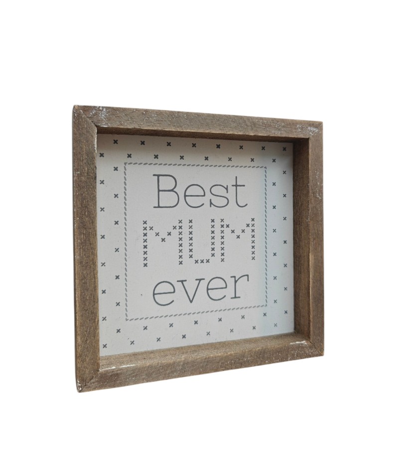 Show Mum just how much she means to you with this charming wooden plaque featuring the loving message “Best Mum Ever.” With its simple rustic frame and neutral design, this piece makes a beautiful decorative addition to any home.