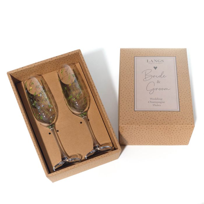 Each glass measures 7.2 x 7.2 x 23 cm, offering a tall and stylish profile that enhances the presentation of your favourite sparkling drinks. The charming design makes this set a lovely keepsake to remember a special day.