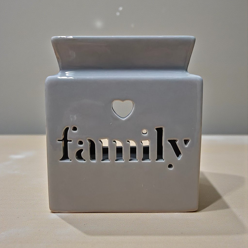 Create a warm, comforting atmosphere with this beautifully crafted ceramic burner, featuring a delicate heart cut-out and the word Family on the front.