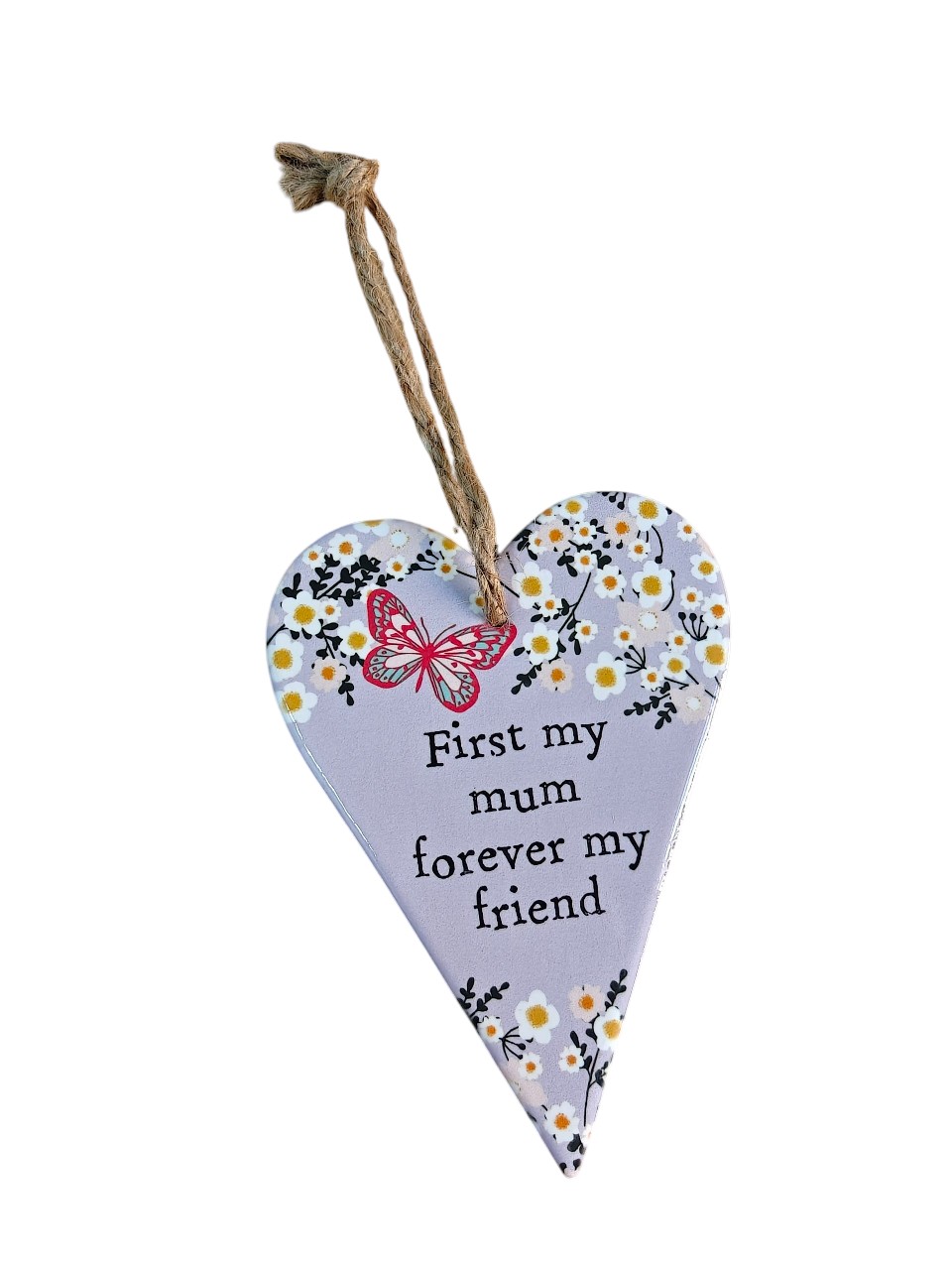 Show Mum just how special she is with this charming heart-shaped hanging plaque, featuring a sweet bee and floral design and the loving message. With its soft colours and rustic twine hanger, this decorative piece adds a warm and cheerful touch to any home.