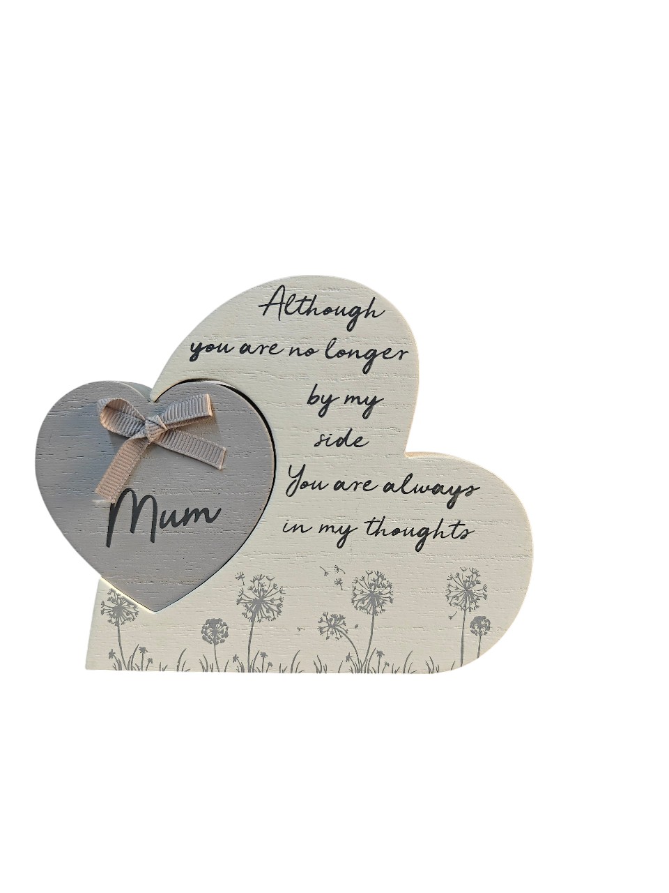 Keep the memory of a beloved Mum close with this beautiful wooden heart-shaped memorial block, featuring a soft dandelion design and a touching message:
