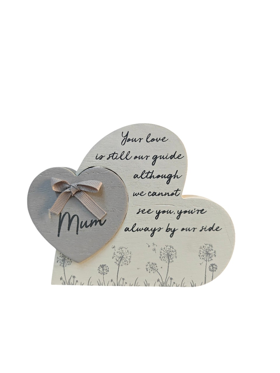 Remember and honour a beloved Mum with this beautiful wooden heart-shaped memorial block, featuring a gentle dandelion design and a touching message: