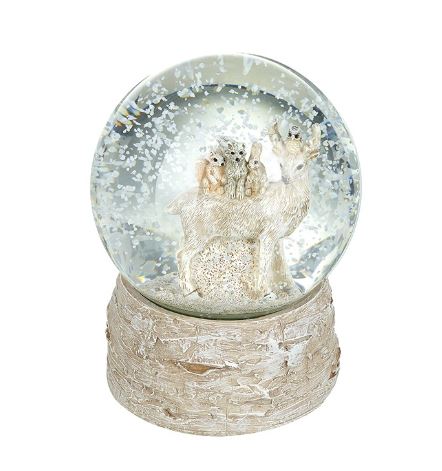 Capture the magic of winter with this charming woodland snow globe, featuring a graceful deer surrounded by its adorable forest friends. Set on a rustic, bark-effect base, this delicate piece brings a touch of woodland wonder to your Christmas décor. Simply give it a shake to let the snow swirl beautifully around the scene.