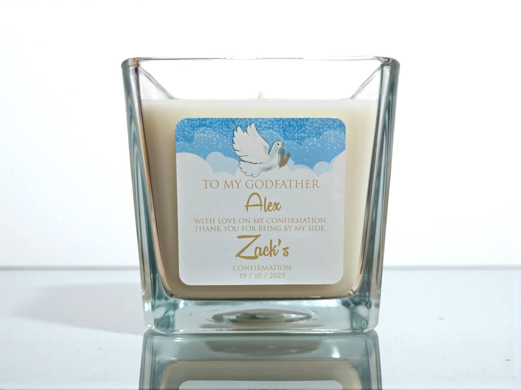 A beautiful keepsake gift designed to celebrate the special bond with a godfather. This elegant candle comes in a refillable glass container, making it a thoughtful present that can be enjoyed time and time again.